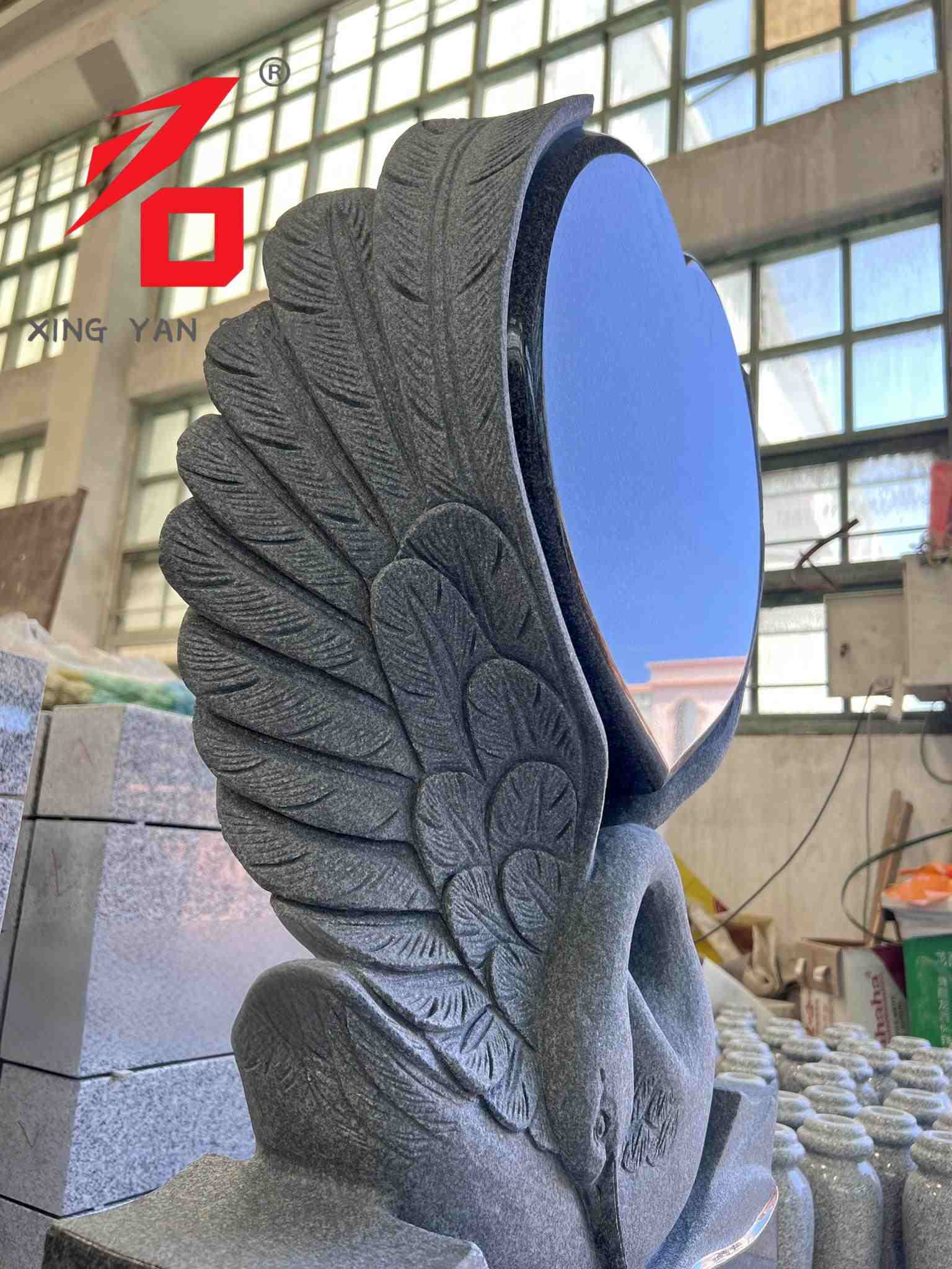 ဒီဇိုင်း - အဓိကခန္ဓာကိုယ်သည်အရောင်တောက်တောက်တောက်ပသောနှလုံးသားဖြစ်သည်။ Swan ပုံသဏ် and ာန်နှင့်နှလုံးသားသည်ထာဝရချစ်ခြင်းမေတ္တာနှင့်ကွယ်လွန်သူကိုအောက်မေ့ရန်သတိရစေသည်။ ဒီဇိုင်းသည်အလွန်အမင်းအနုပညာရှင်ဖြစ်ပြီး၎င်းကိုရိုးရာသင်္ချိုင်းမှတ်တိုင်များကိုခွဲခြားထားသည်။